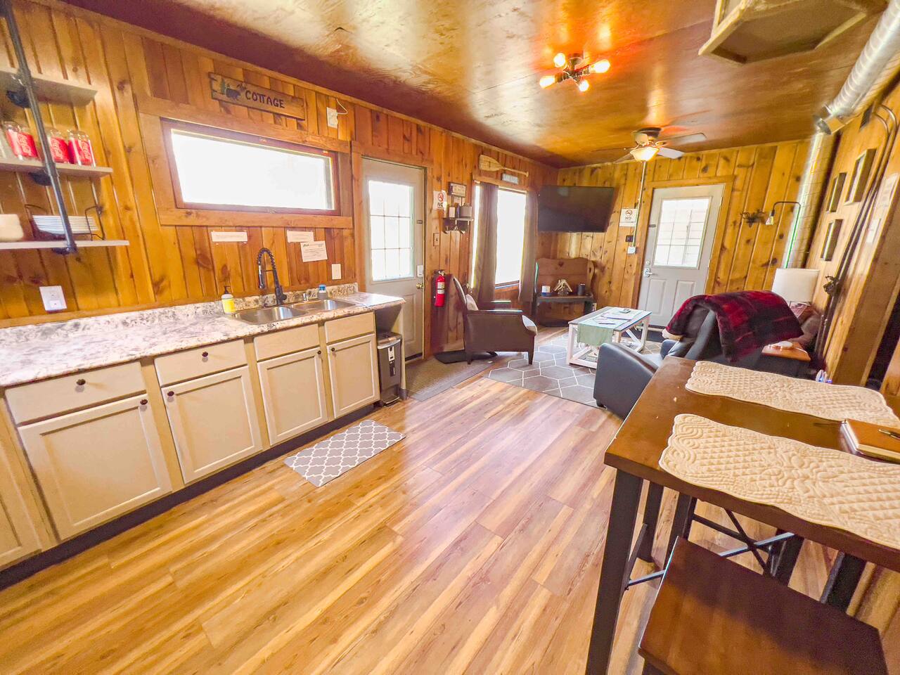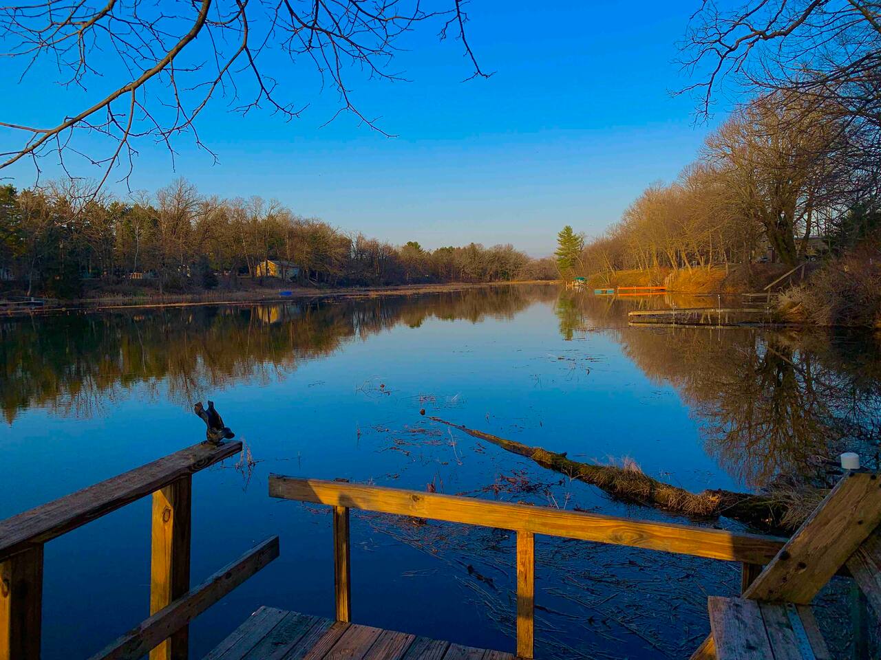 The newly-renovated rustic cabin has 2 bedrooms and one spacious full bath with a full kitchen available for your use, which has all the needed accessories for a get away in addition to 3 smart TV's for your entertainment. The kitchen is fully equipped with everything needed to cook for a party of 4 or a small romantic meal. Cozy up to the fire pit outdoors or enjoy a BBQ at the outdoor covered picnic area, which is the perfect place to spend the day relaxing, visiting, or simply enjoying the brilliance of Southeast Wiscsonsin's starry sky. Wildlife sightings regularly include deer, turkey, fox, chipmunks, squirrels, and dozens of species of birds. The property is on a body of water* with a private pier that you can fish from and also enjoy the views of the water, in season. * Hot Tub * Living room, bedrooms, and bathroom * Smart TV in bedrooms and living room * Two bedrooms three beds with Zinus green tea memory foam mattresses * Plenty of storage space for belongings * Kitchen with stove, oven, dishwasher, microwave, fridge, and ample counter space * Cookware and dinnerware for meal preparation * Stunning lake views * Private dock for water activities * Firepit * Propane grill Adams County Castle Rock Park is about 20 minutes away and open year-round, which is a 141 acre park on the 4th largest body of water in Wisconsin. The park also has a designated swimming area, boat launch and snowmobile unload/load area. Tourist Room House License #15627 *Highly recommend Airbnb travel insurance when booking ** We do not accept any date alterations for any reason. We also do not process refunds. We recommend all guests to purchase travel insurance incase you are unable to make your reserved dates. In the winter there is snow and a 4WD is recommended. We do not offer refunds for any reason including weather. Thank you Please note Easton Lake has experienced more algae than usual this year due to the high heat and rain. Unfortunately, we don't have control over these natural conditions. However, the Department of Natural Resources (DNR) is actively working on improving the situation. We appreciate your understanding and will continue to do our best to provide a pleasant stay for our guests. Pictures are not updated every year in the Airbnb listing of the lake. P.S. Also the bugs are much worse this year than normal!