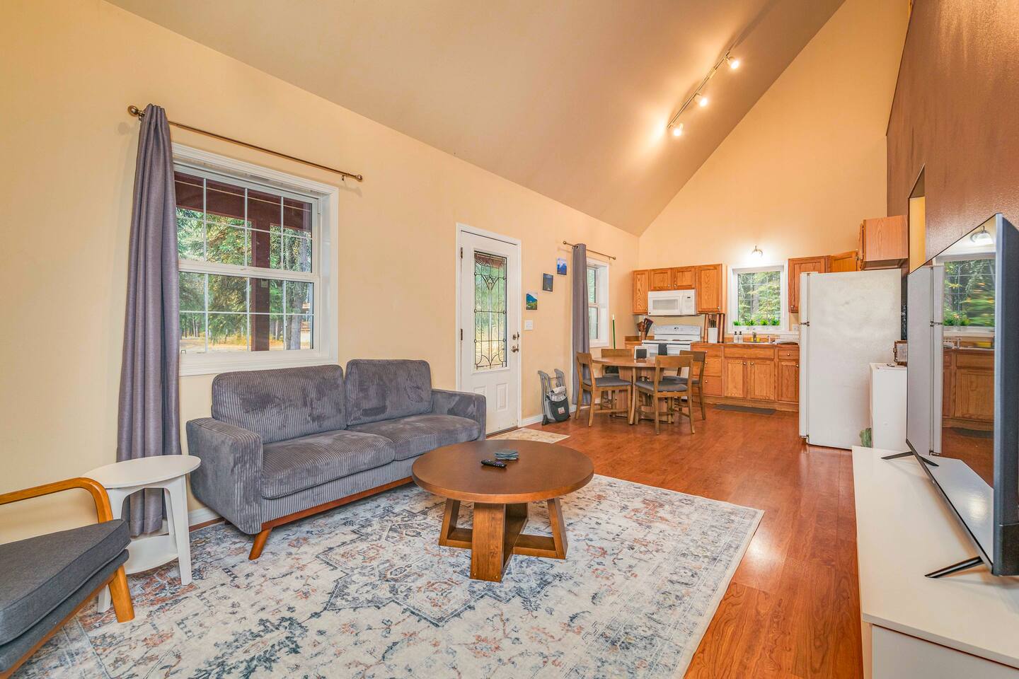 Relax on the porch at this cozy, newer home featuring 1 bedroom and an open loft for extra sleeping space. Unwind in the inviting living room, cook in the fully equipped kitchen, and enjoy the convenience of a full bathroom. A perfect blend of comfort and simplicity, just minutes from town and local attractions.
