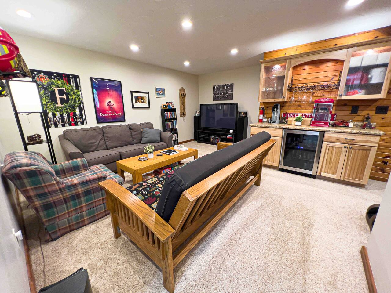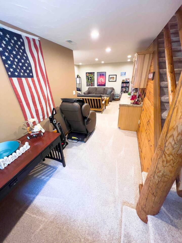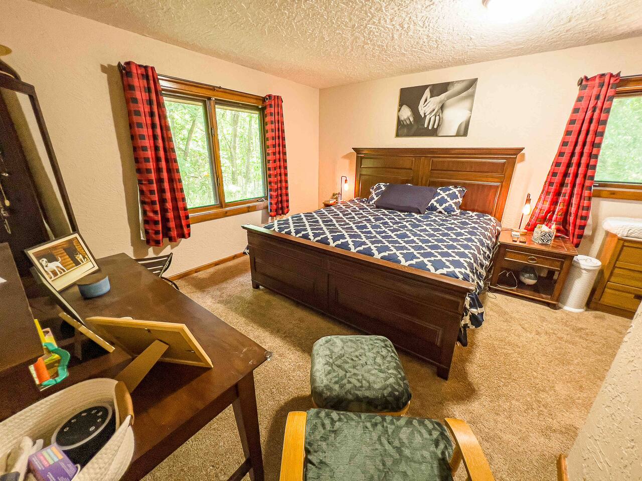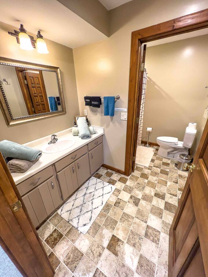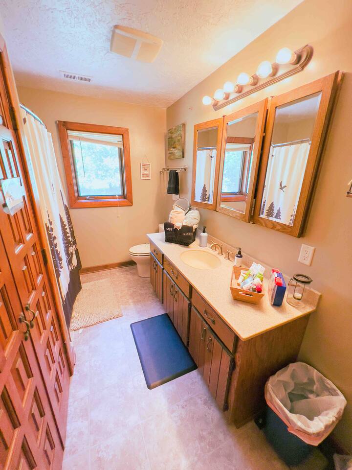 The beautiful kitchen is fully equipped with everything needed to cook for a party of 6 or a small romantic meal. For your convenience, some basic ingredients and spices are provided. Cozy up to the cobblestone fireplace indoors or keep warm at the fireplace outdoors on the picturesque deck complete with patio furniture, grill & outdoor lighting. The deck is the perfect place to spend the day relaxing, visiting, or simply enjoying the brilliance of Southeast Wiscsonsin's starry sky. Wildlife sightings from the deck regularly include deer, turkey, fox, chipmunks, squirrels, and dozens of species of birds. If lake life is what you’re interested in, the home is located a short drive from Pewaukee Lake. Fishing, boating, water sports and more available to you. Bring your water toys and put in at the public launch. The only lake access is via the public launch or Pewaukee beach. Hidden Hideaway does not have lake access to water via piers. * Log Cabin with stunning wood work and wood beams * Upper and lower floor living rooms, bedrooms, and bathrooms. * Tv in living room 75'' * Smart TV's in 2 bedrooms and living rooms. * Futon bed in lower living room * Plenty of storage space for belongings * Kitchen with stove, oven, dishwasher, microwave, fridge, and ample counter space * Cookware and dinnerware for meal preparation * Two full bathrooms * Pewaukee boat launch 3 mins away * Private back patio with furniture for relaxing. * Gas fire pit on back patio * Propane grill Please note that our backyard features, including the gas fireplace, are stored away for winter at the end of October. These amenities are not available for winter stays.
